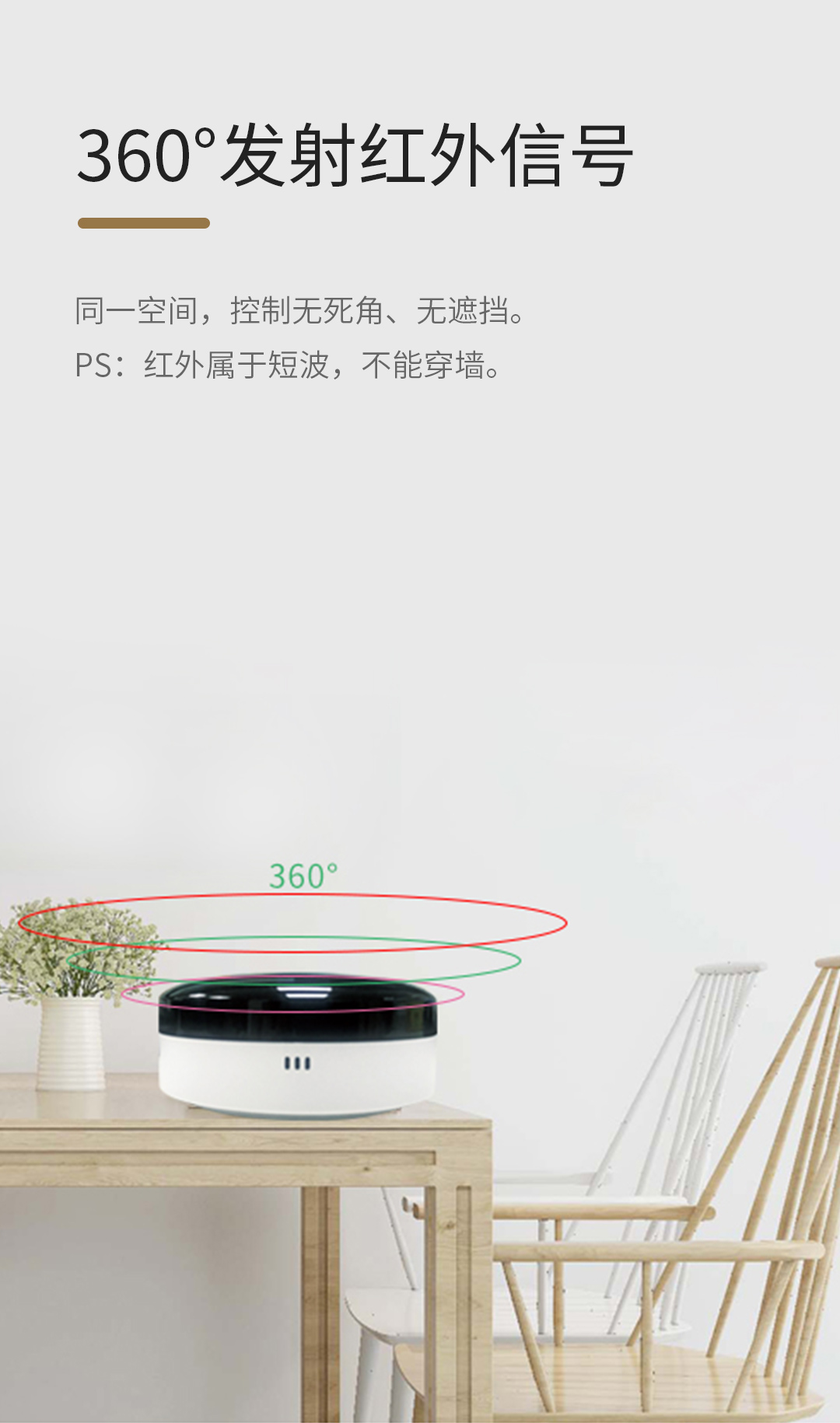随时随地控制家中所有红外类设备家电,像空调(中央空调暂时不支持),电视等家电。