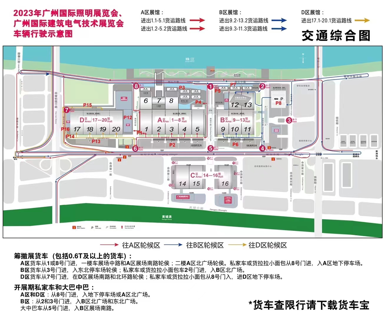 地铁:乘坐地铁二号线 / 三号线 / 四号线,可于昌岗站/ 客村站 /万胜围站转乘地铁八号线,在琶洲站A或B出入口下,从展馆4号门进入,可直达B区