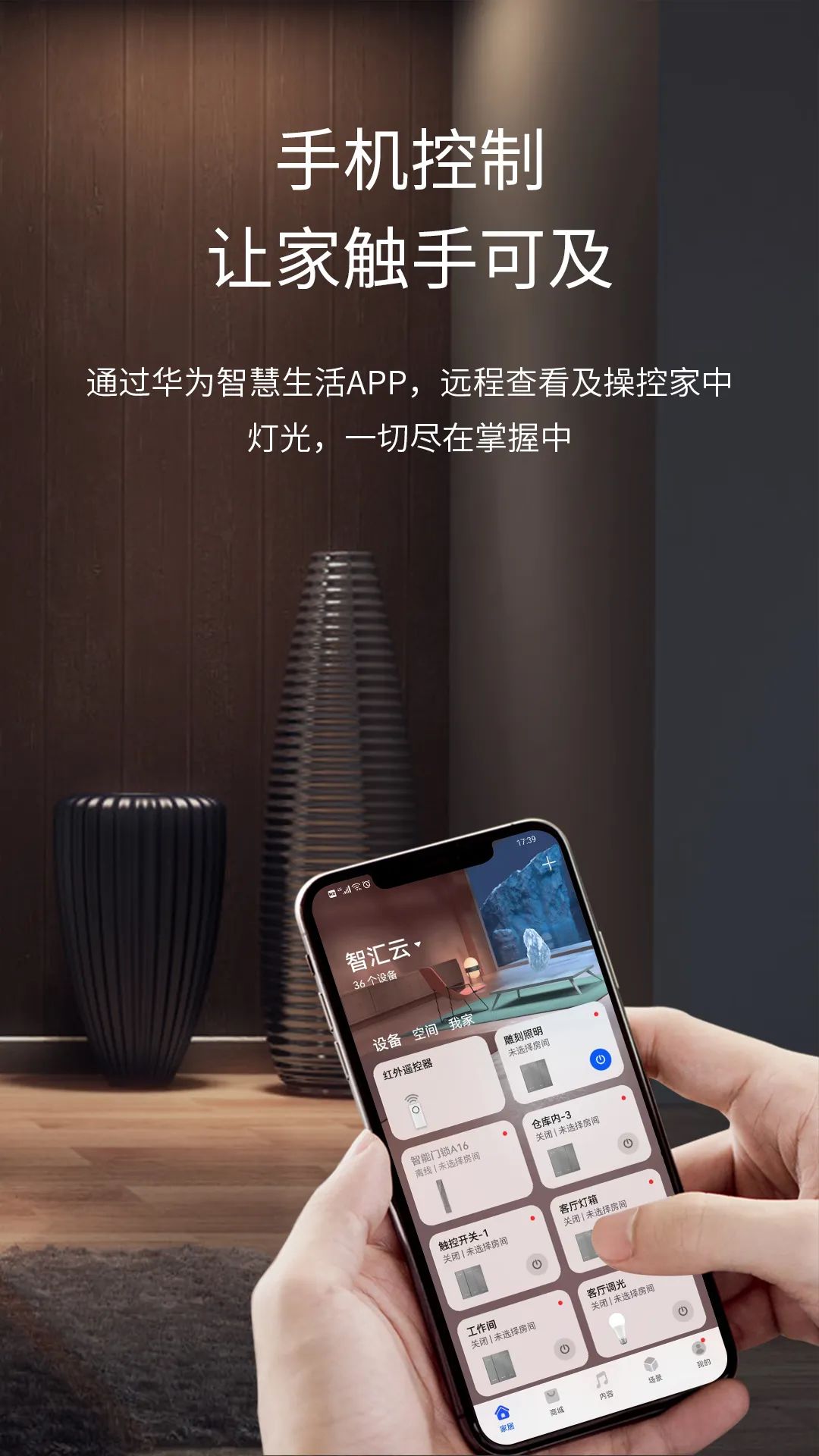 用户可以在 华为智慧生活App 通过连接的第三方平台绑定3499拉斯维加斯账号,实时控制3499拉斯维加斯智能设备;还可与其他华为生态产品搭配,设置个性化场景模式,让生活更加随心所欲。