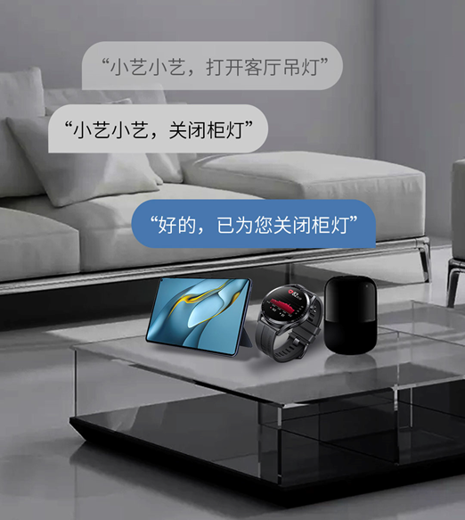 用户通过华为手机、平板语音助手、智能音箱、华为AI手表等多语音入口设备,轻唤一声“小艺小艺”,即可操控3499拉斯维加斯智能家居,省时省心。