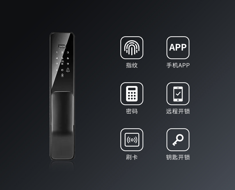 在稳定性方面,采用进口半导体指纹开锁技术,开门的同时亦可同步联动开启或关闭全屋其他场景,例如实现一键联动灯光、窗帘、家电等,带来更便捷的智能家居体验;支持密码、感应卡等独立开门方式;用户可以根据自己不同的需求设置不同的场景;设置任意两者组合开锁。在通用性方面,当电量过低或者使用指纹、密码、卡片连续开门失败,真插锁芯可以使用钥匙或者移动电源充电的方式进行开锁。