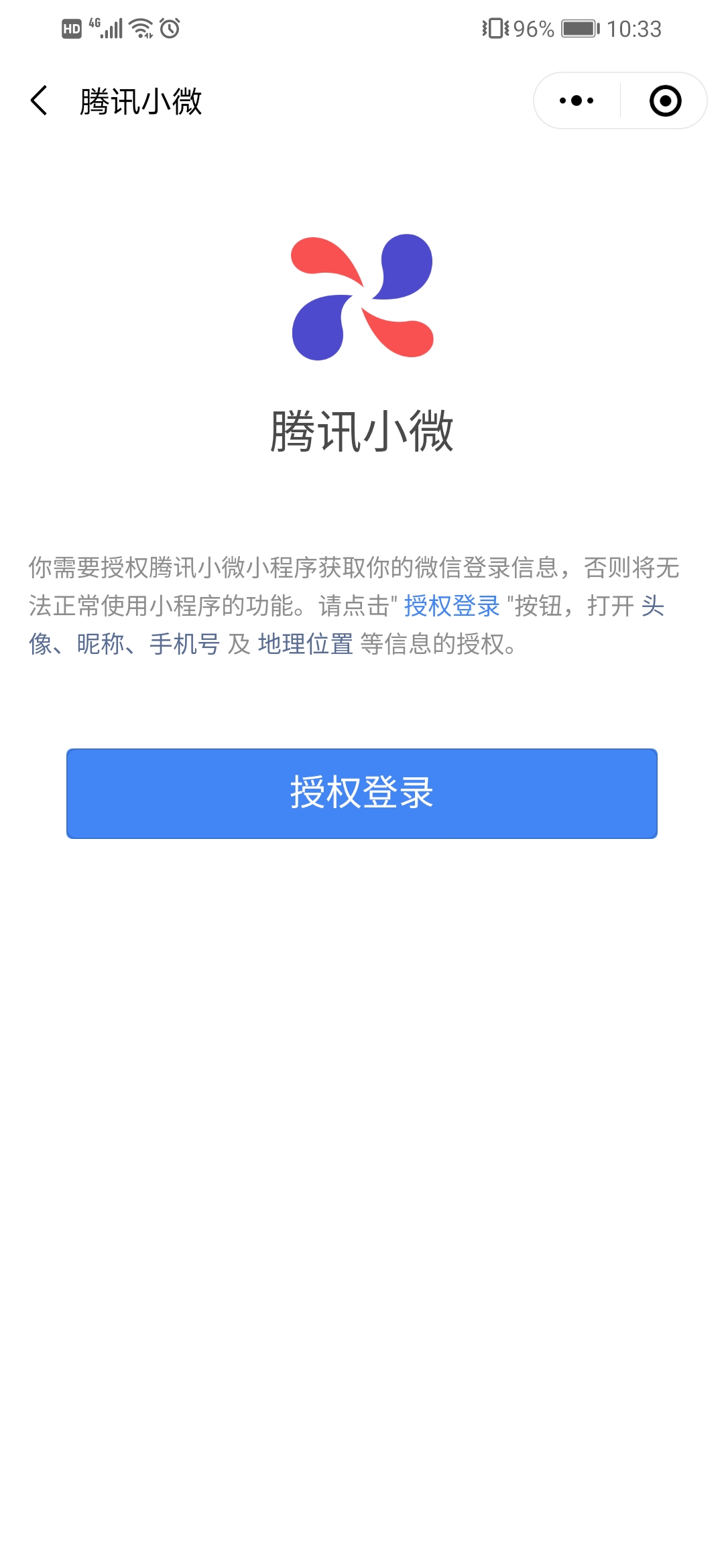 1、 打开微信小程序“腾讯小微”,点击上方“登录”;