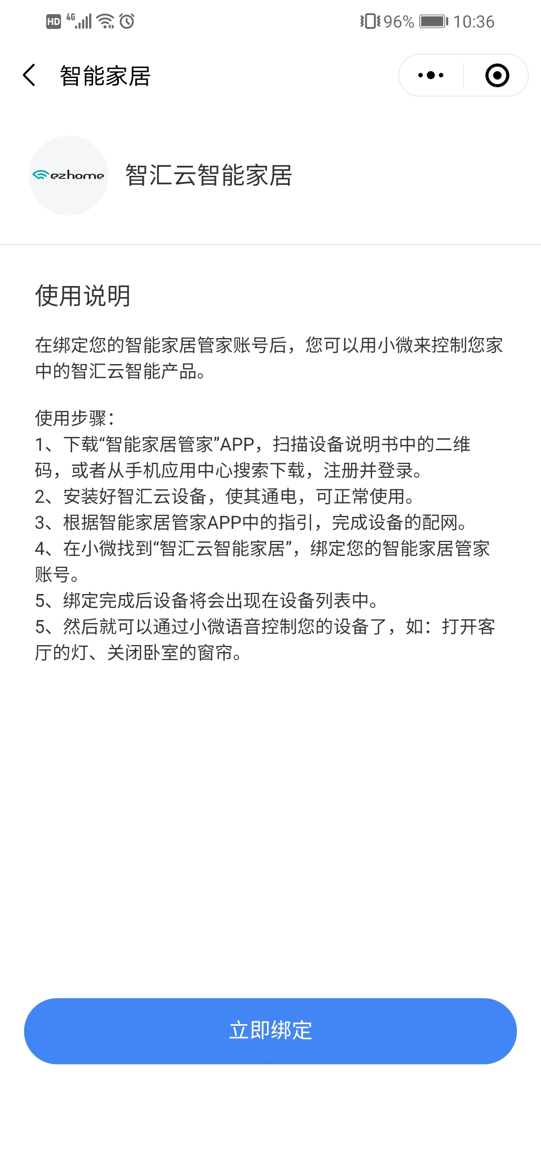 5、点击“绑定智能家居账号”;
