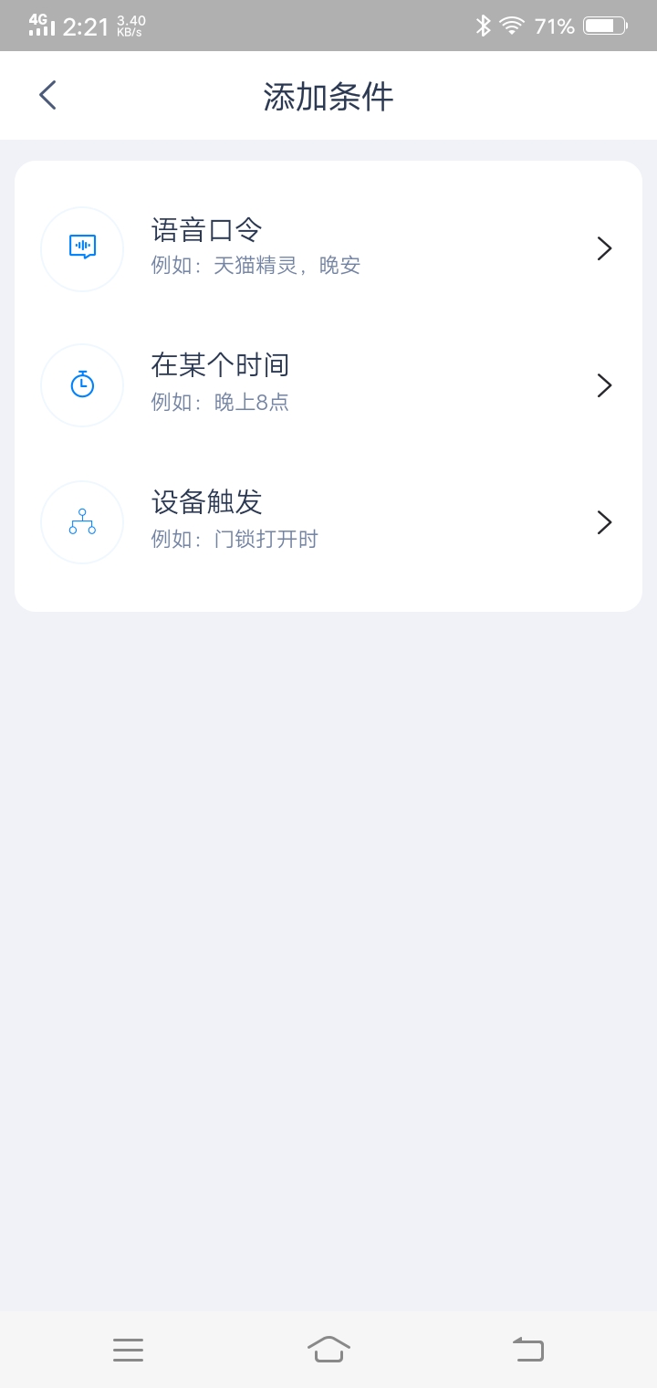 10、根据需要,可对“语音命令”、“在某个时间”、“设备触发”进行一个或多个设置所需执行的动作;