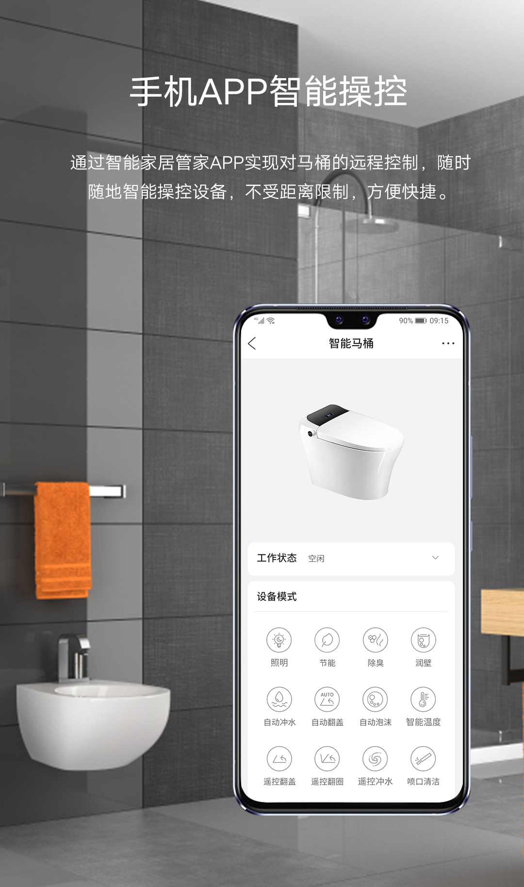 可通过智能家居管家APP实现对马桶的远程控制,随时随地智能操控设备,不受距离限制,方便快捷。