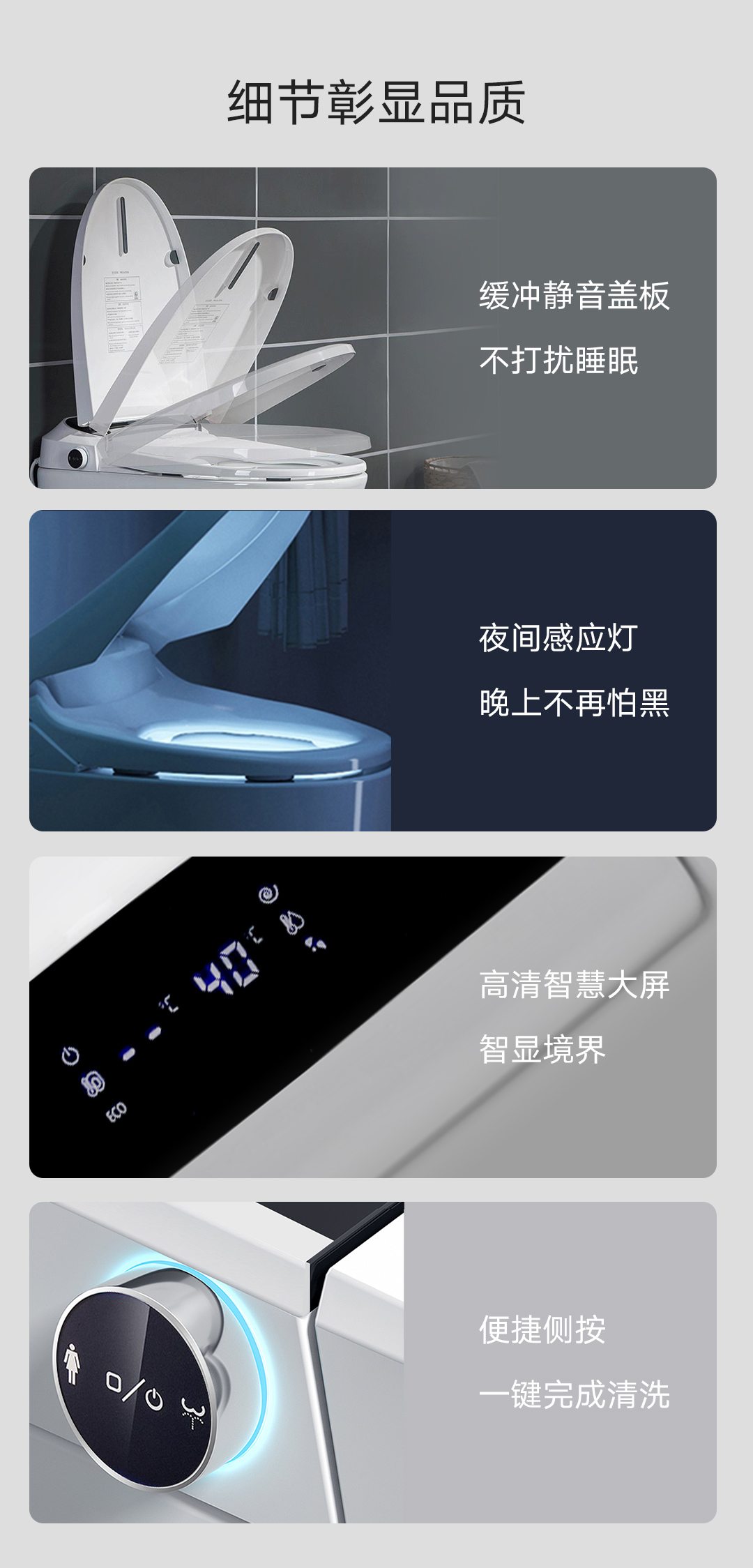 第二是马桶的核心功能如冲水、冲洗、烘干、除臭等功能,要有实用价值,也要为人体的健康着想,体验感要棒;