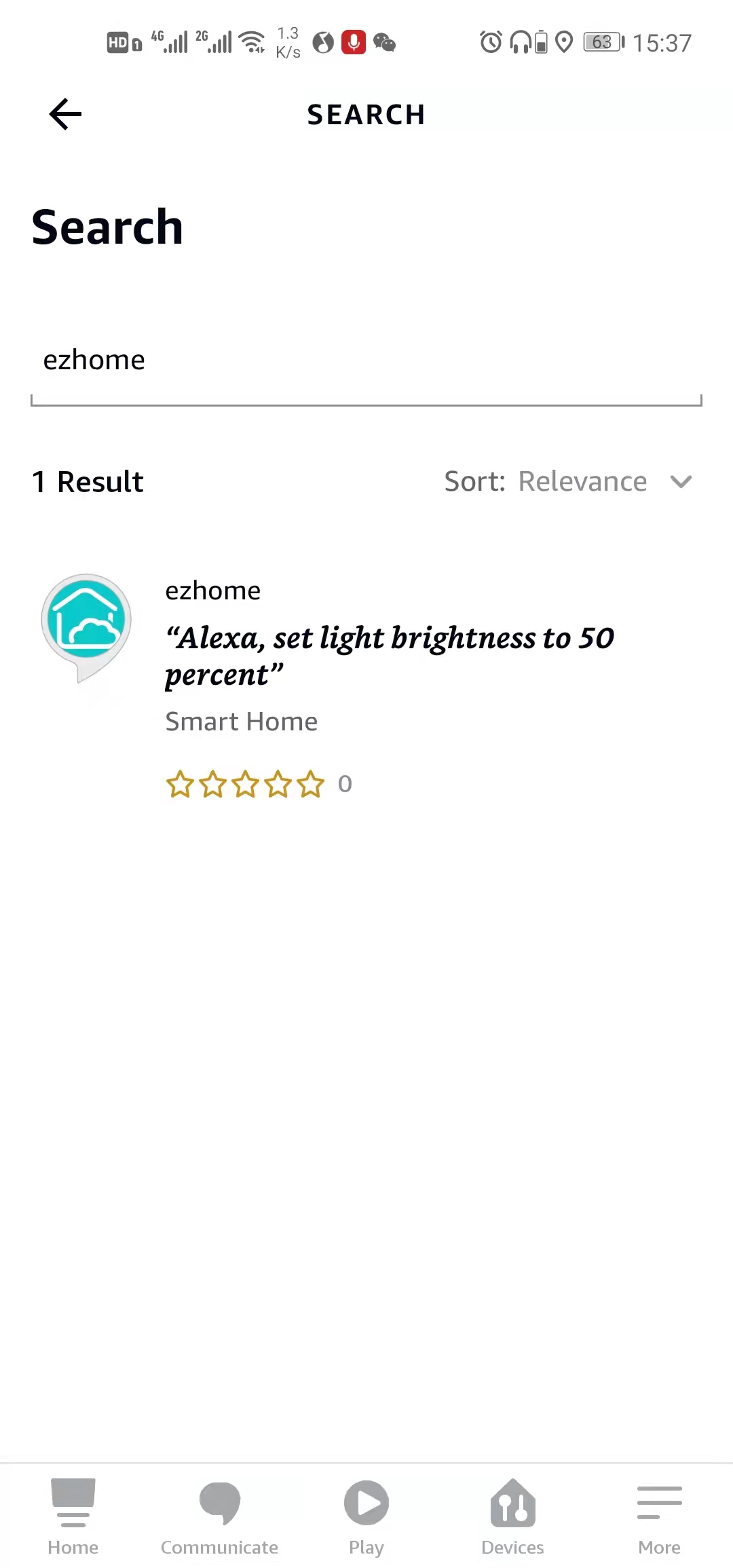 1、 打开“Amazon Alexa”APP,在首页搜索“ezhome”跳转至本页面
