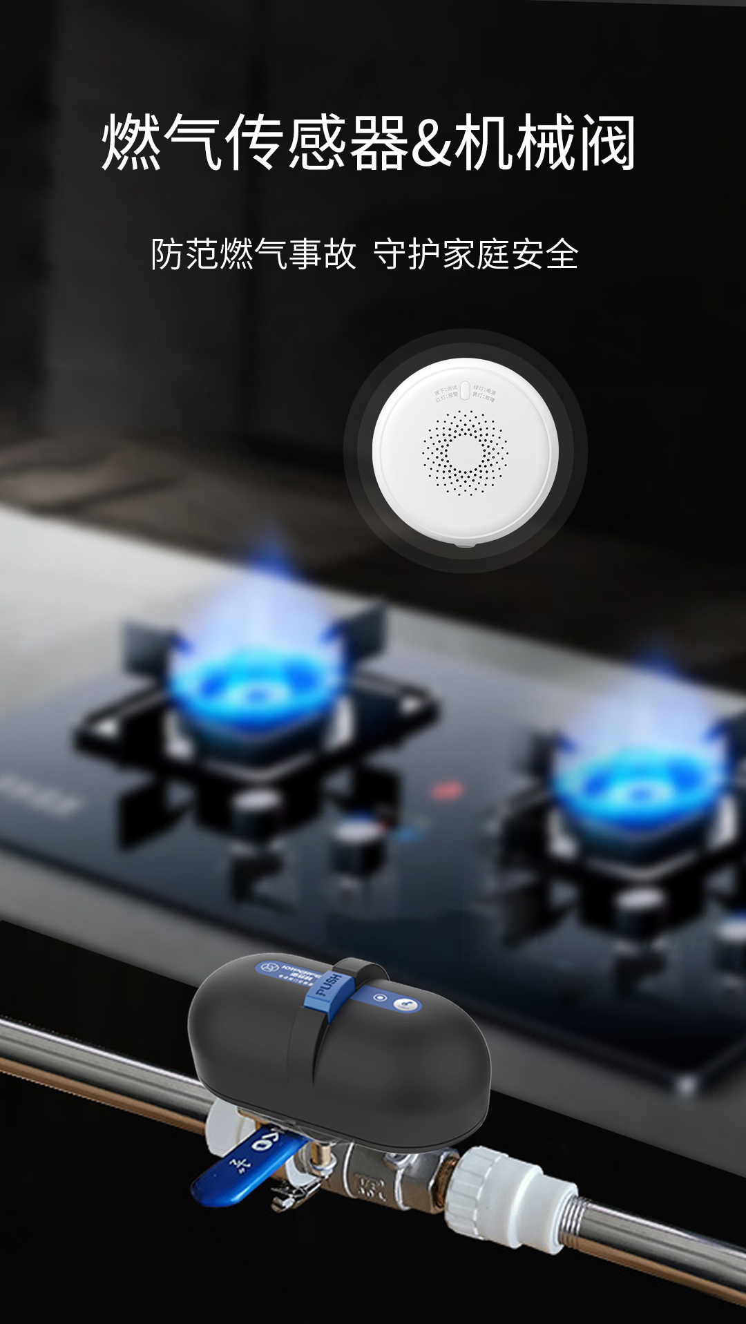 所以,我们要防患于未然,在家里的厨房、餐厅装上燃气传感器&机械阀,让家庭远离燃气事故。
