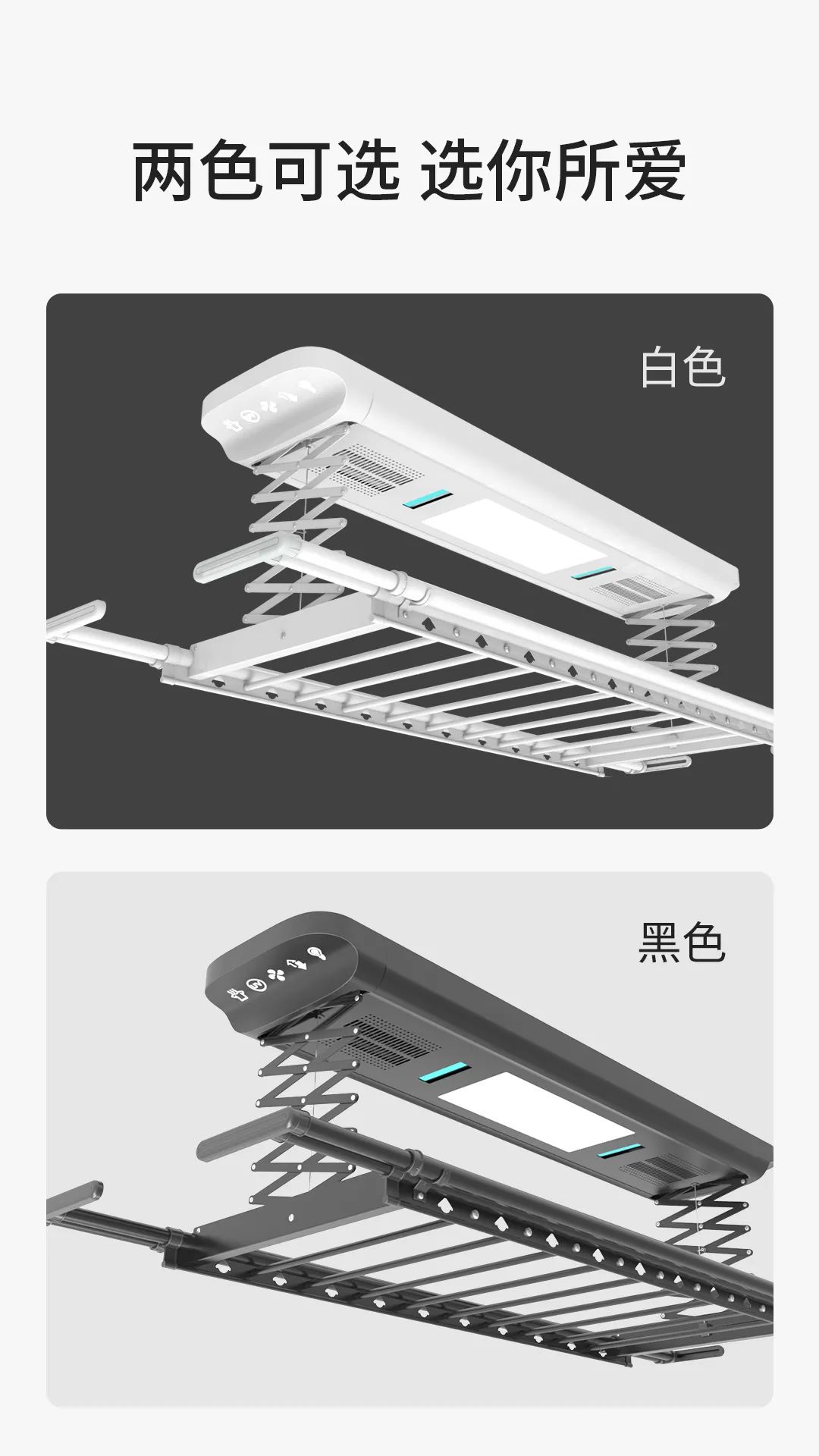 3499拉斯维加斯这款智能晾衣架采用太空白和简约黑的颜色款式,更加有现代感和时尚感,整个机身集成化设计,流线造型,外观简洁优雅。整体搭配非常简约干练,完全没有传统晾衣架的笨重感。
