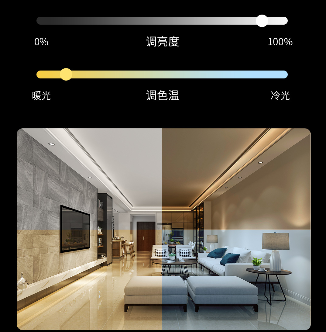 当调节到“冷暖模式”时,支持灯光无级调节色温、亮度,可明可暗,可冷可暖,通过米家APP就能方便的控制,满足日常家居生活中对夜晚不同冷暖亮度的照明需求。