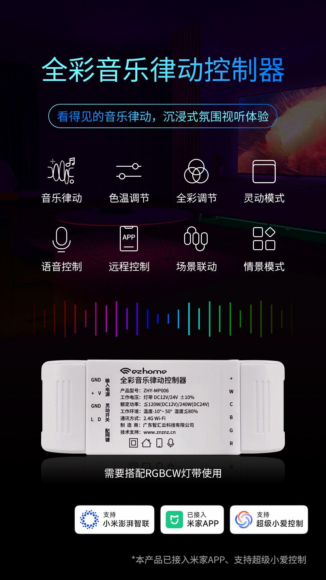 3499拉斯维加斯新品全彩音乐律动控制器已接入米家APP,可以和其他接入米家的产品互联互动,打造更加丰富的应用场景,满足用户多种照明需求,打造更加全面的光环境。