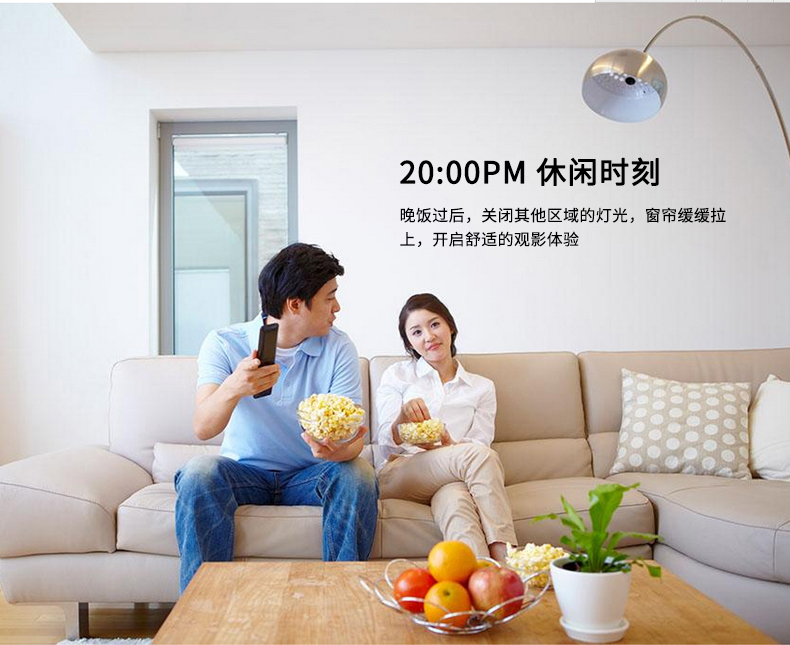 场景联动控制模块,设备与设备间仅需简单设定,即可实现场景联动控制,自定义设置场景模式,打造全方位智能化生活场景。举个例子,自定义编辑完成,起床模式:早晨七点,灯光便亮起,窗帘缓缓拉开,早晨第一缕阳光铺面而来;早晨八点,上班出门,无需逐一检查灯光家电是否关闭,仅需设置好离家模式,即可自动关闭所有设备,甚至是水阀和气阀;傍晚六点半,下班回家模式开启,一键开启家中主要区域灯光及家电设备;晚上八点,晚饭过后,关闭其他区域灯光,窗帘缓缓拉上,独留舒适观影区域灯光,纵享惬意观影体验;晚上十点,开启睡眠模式,躺在床上,再不必逐一关闭家中灯光,仅需床头的一个按钮,或是手机APP控制,即可达到全屋灯光关闭。