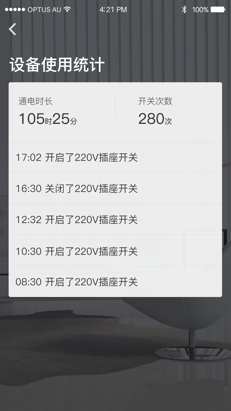 可在手机上查看家中灯光、家电设备最近10次的使用记录,包括使用时间、按键次数等。