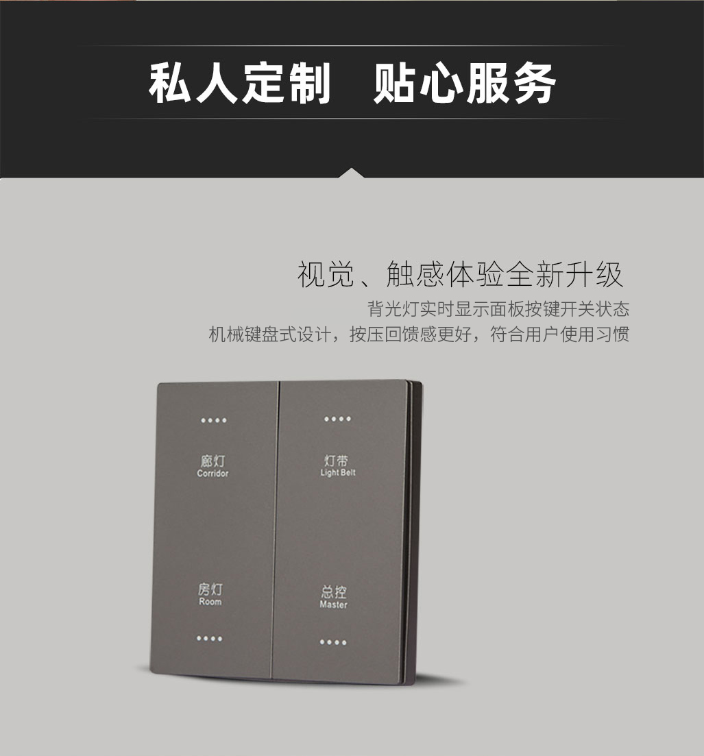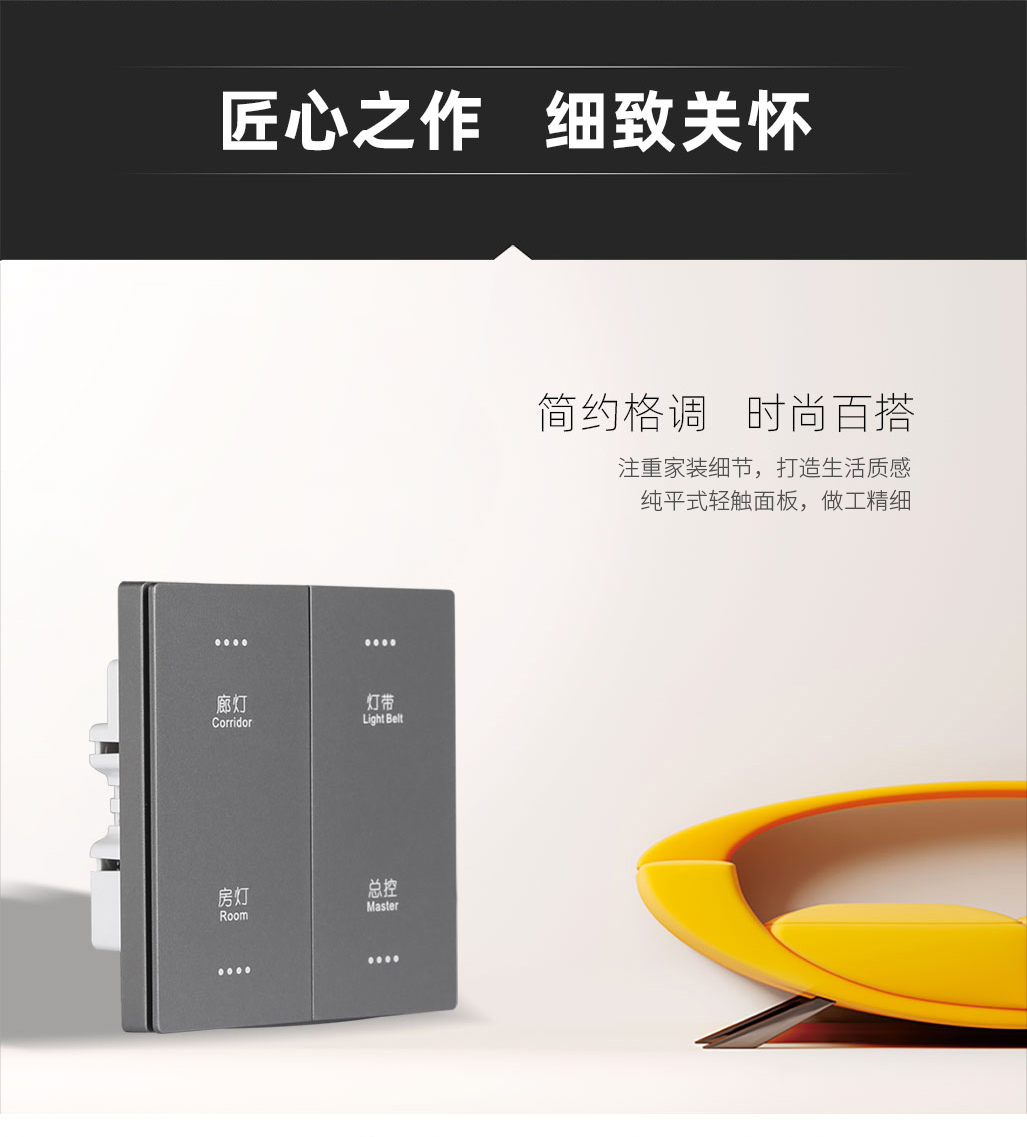 面板外观简约百搭,适合多种装修风格;按压触感回馈及时,一触即亮。