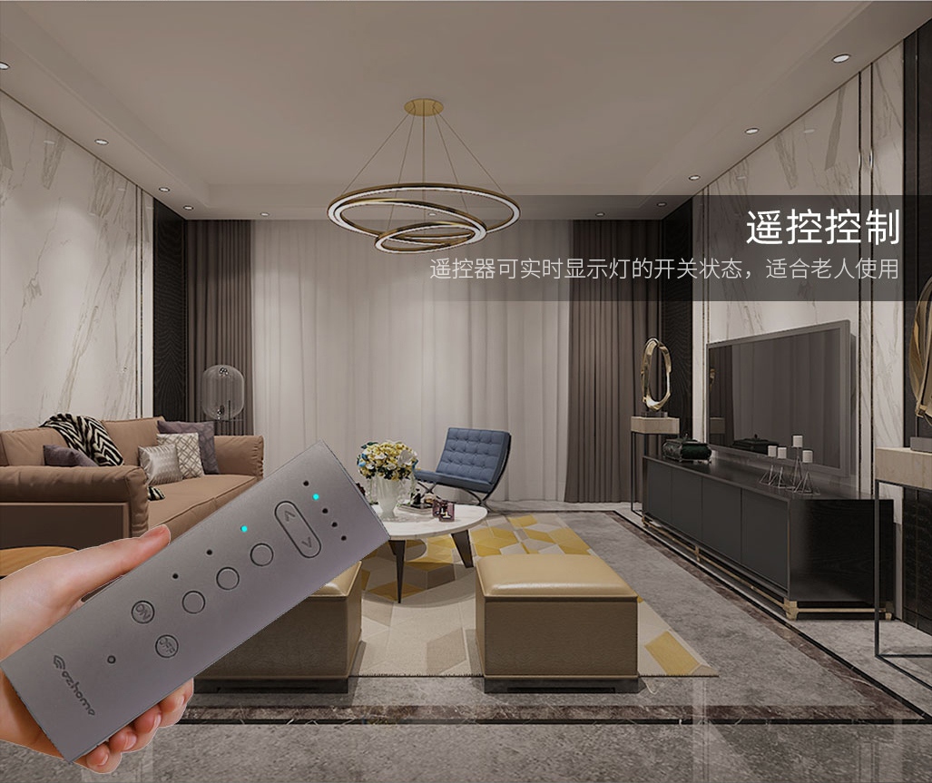 遥控控制:搭配3499拉斯维加斯重力感应遥控器,远程控制面板开关,实时显示开关状态。