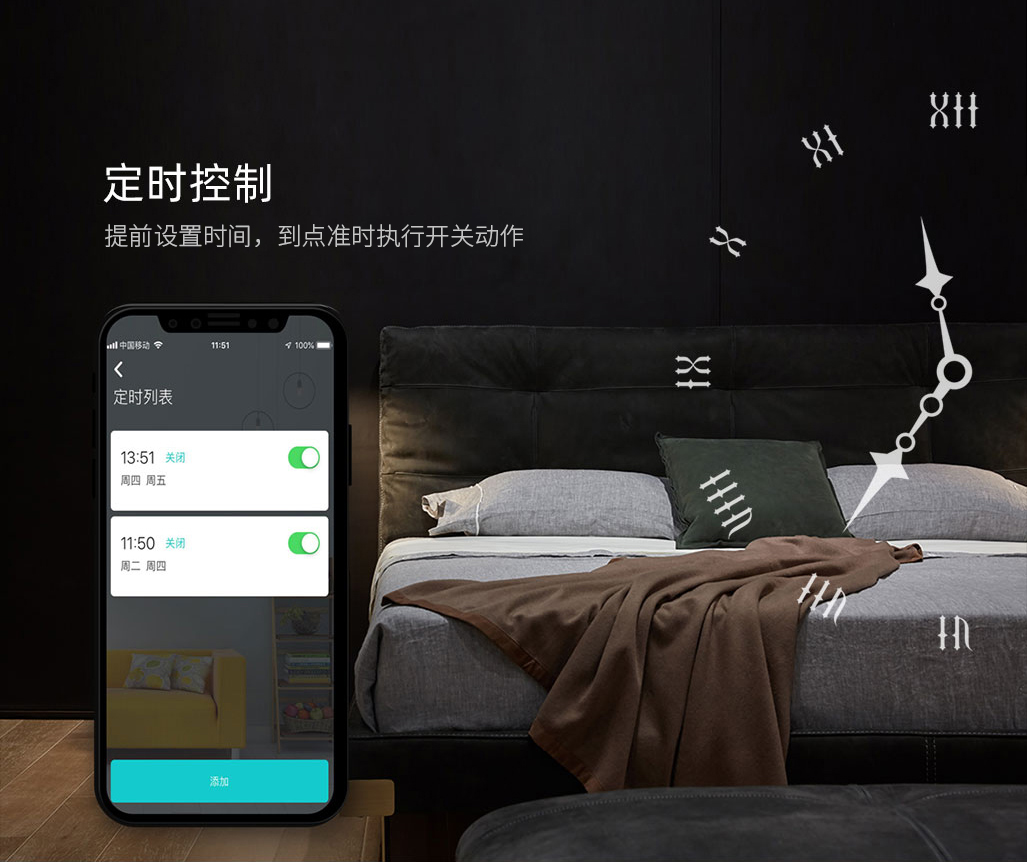 定时控制:可在手机APP提前设定面板开关执行时间,到点准时执行开关动作。