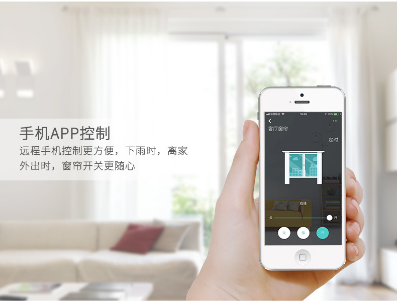 智能家居的兴起,让智能窗帘成为窗饰遮阳发展的新潮流,相比起传统窗帘,智能窗帘更为便捷和舒适,手机APP即可随时随地控制窗帘的开合状态。