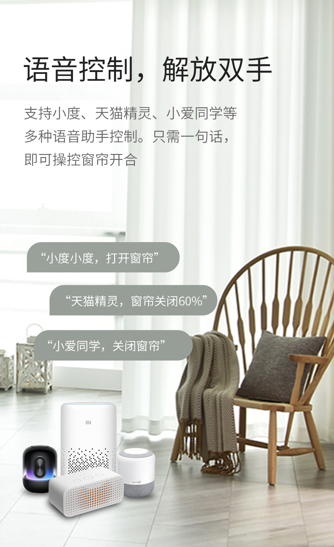 选购智能窗帘时,首先看电机。智能窗帘大部分都是外置电机,体积太大会露在窗帘外面,选机身短的电机比较美观。