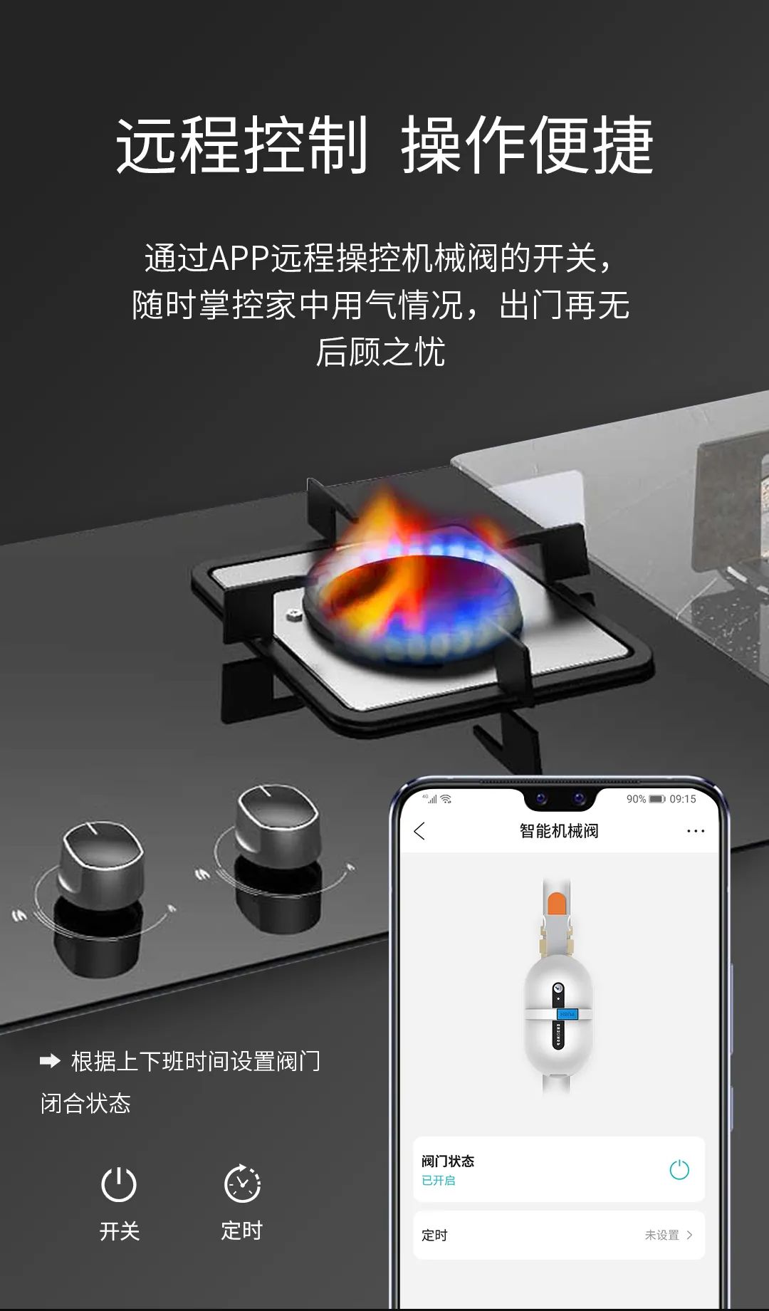 另外,搭配机械阀,还可以控制燃气阀门开关,与燃气传感器联动,在检测到燃气泄漏后,可自动关闭燃气阀门,化解煤气泄漏带来的安全问题。
