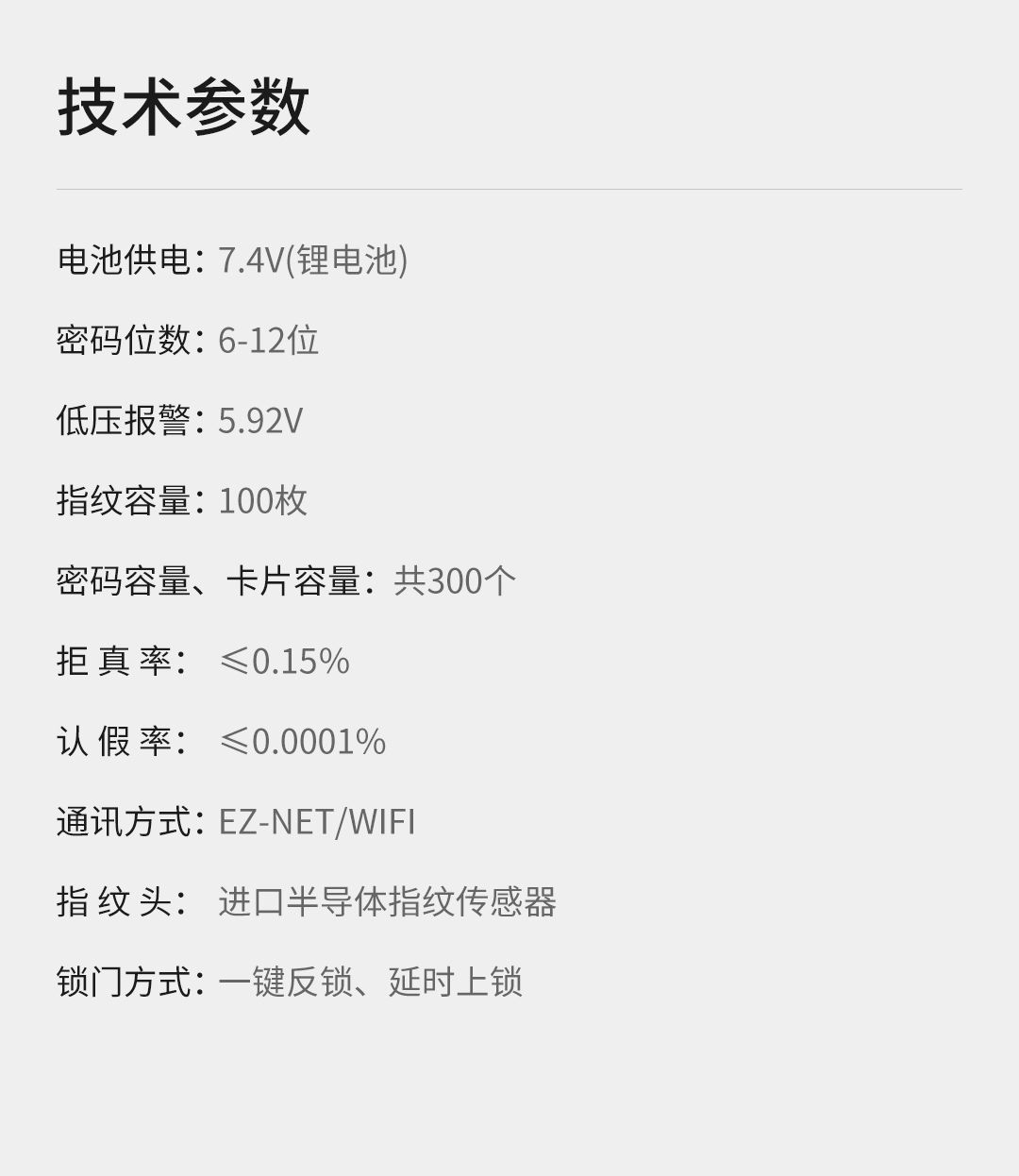 无论是指纹磨损严重的老人还是指纹比较浅的小孩都可以精准识别,可以容纳多达100枚的指纹记忆,家里人多也不怕。