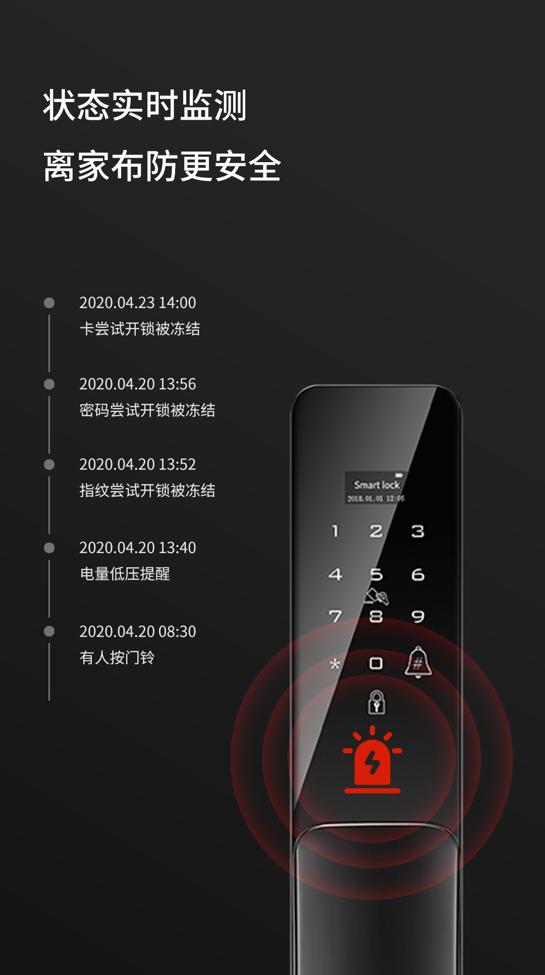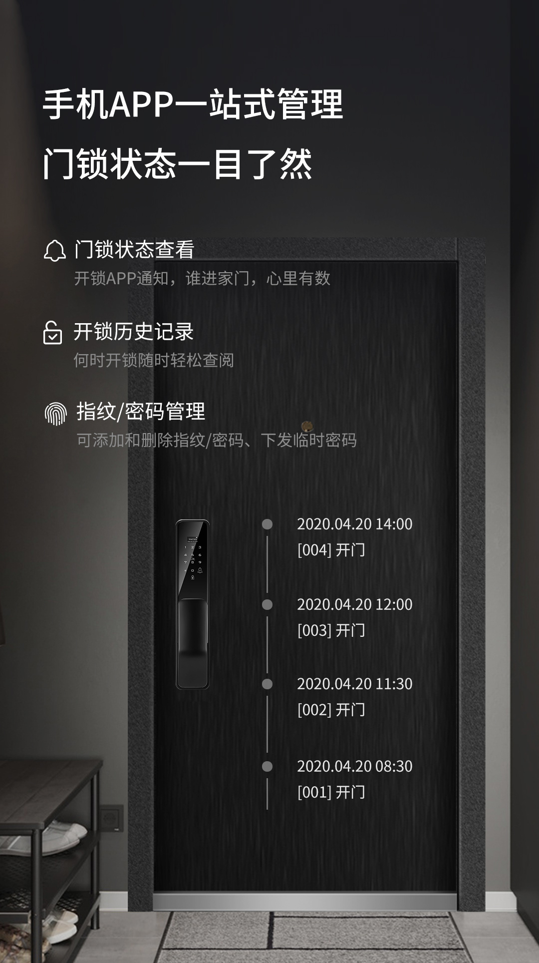 门锁具有访客记录、推送信息的功能,这样即便是出门在外也可以随时查看访客数据,对自己家了若指掌。