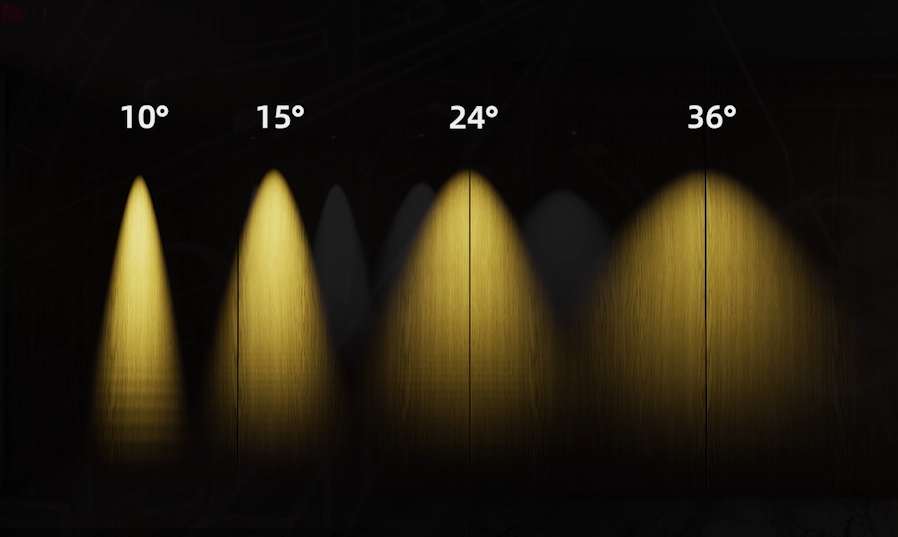 光束角越大,照明区域越广泛;光束角越小,光线越集中,不同的光束角营造的空间氛围也不同。