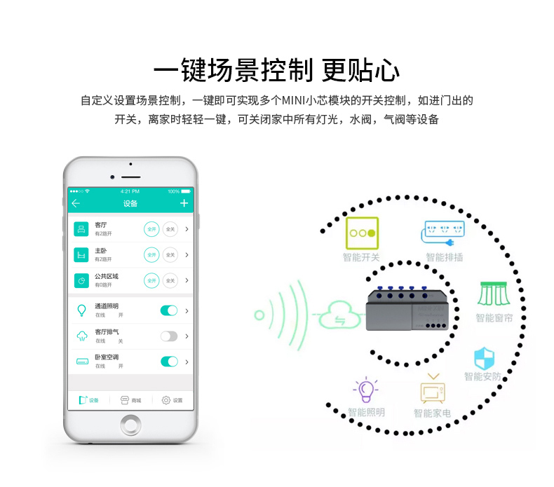 现在:客厅灯、厨房灯没关没关系,反正也躺在床上玩手机,随手一按,就可搞定!老婆,看我帅吧!